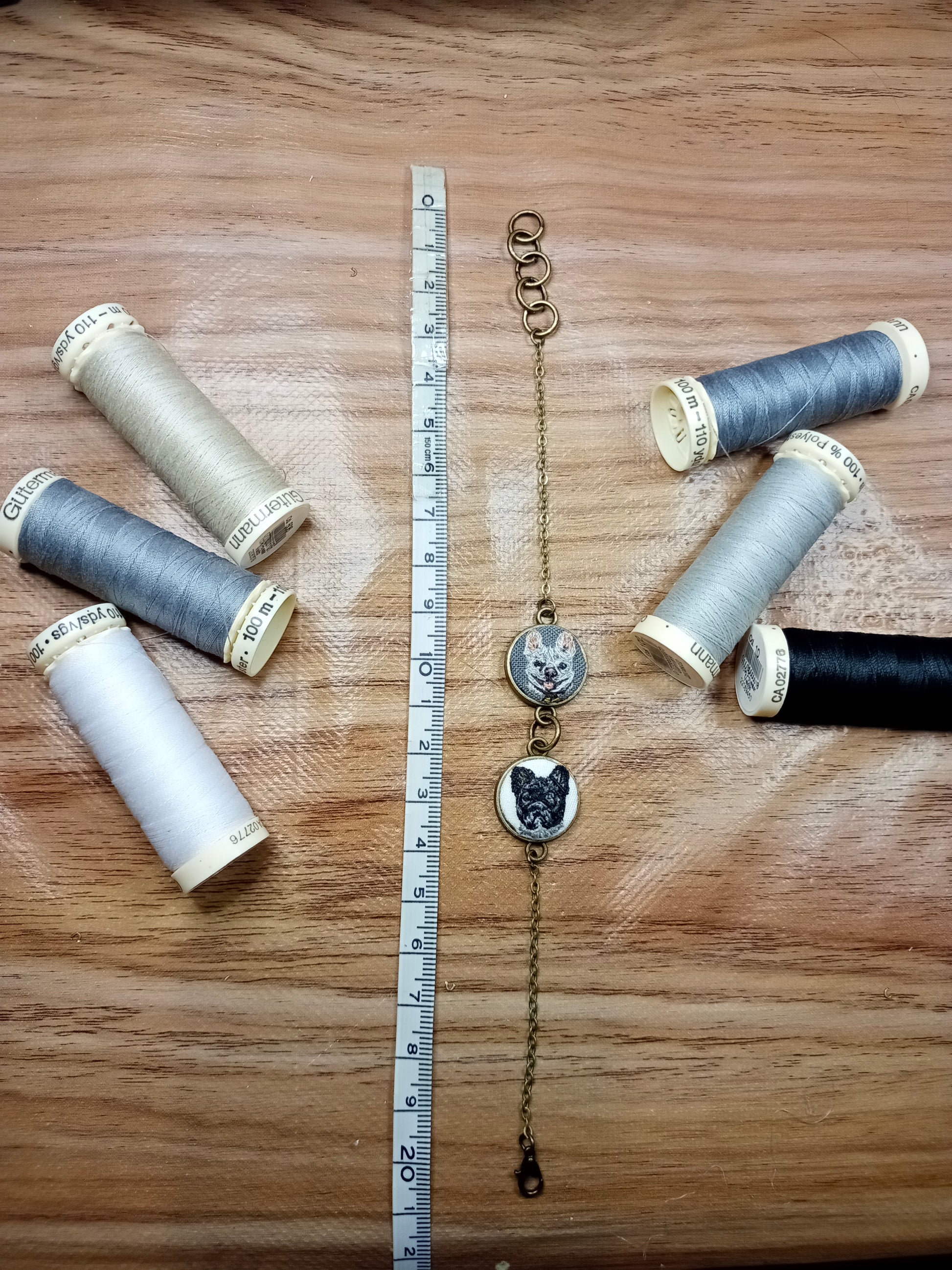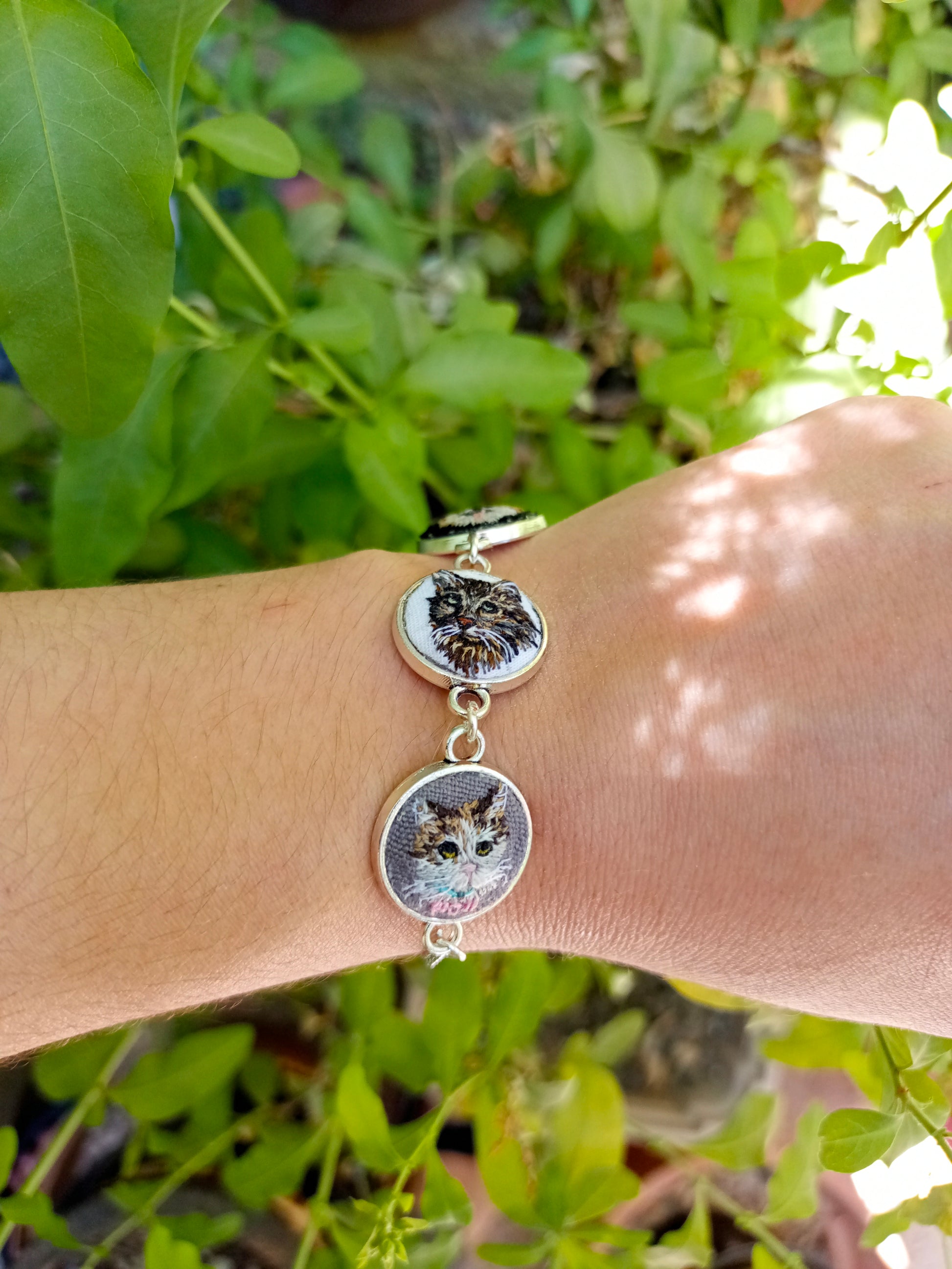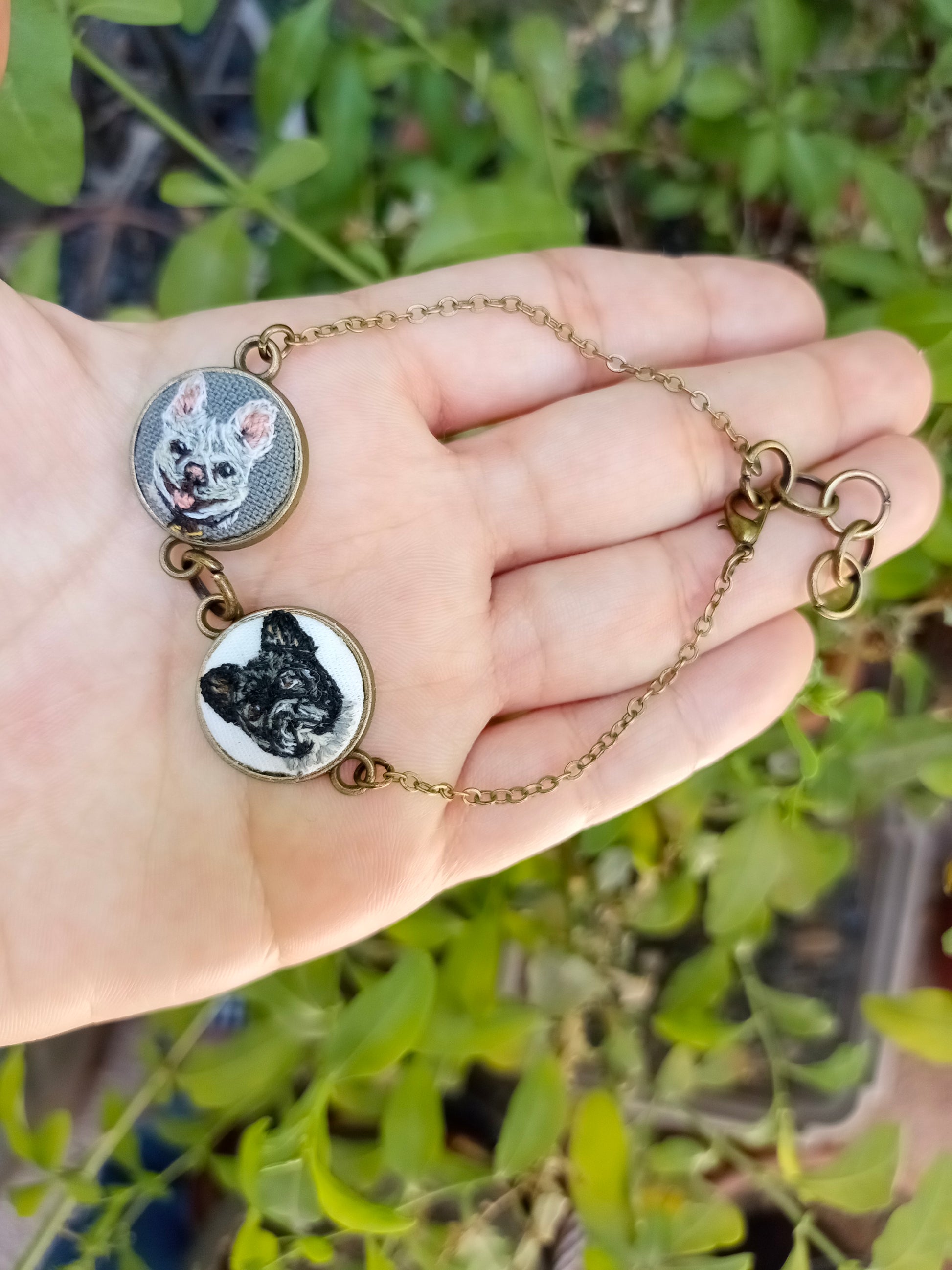 Pulsera o collar en serie, con bordados en miniatura personalizados en base a las fotografías de tus mascotas.